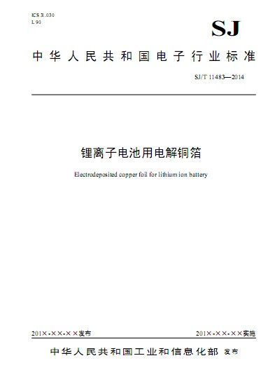 SJ/T 11483-2014《鋰離子電池用電解銅箔》